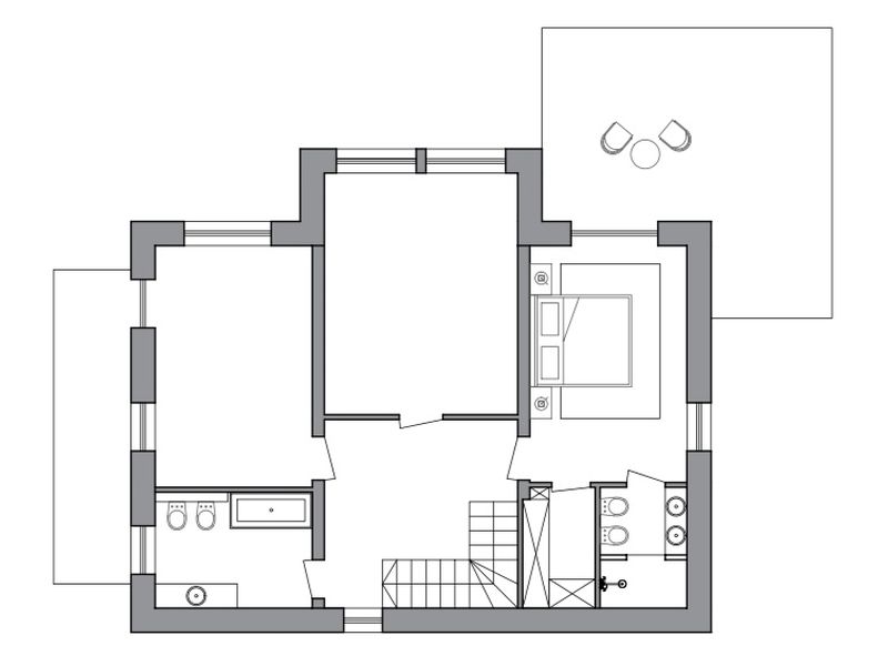 2 этаж: Хозяйский блок 24 м², в котором предусмотрен с/у. гардеробная и спальня, кабинет 15 м², детская спальня с лаунж-зоной и панорамным окном 26 м², общий с/у 8 м².